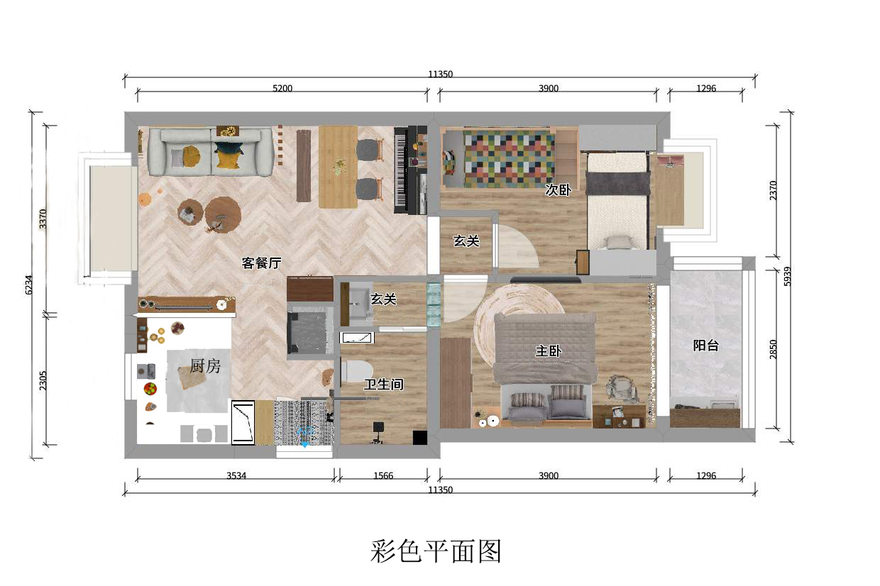 • 原木風(fēng)格 兩室一廳 75平米
